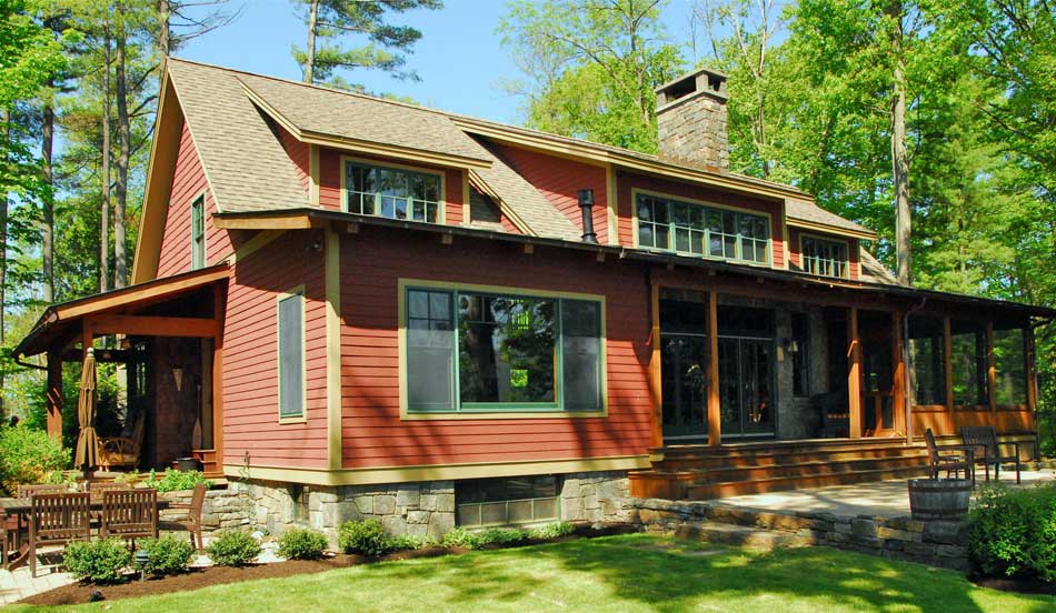 Cozy 2000 square foot home designed to fit comfortably on a narrow lot. Traditional Adirondack design features coupled with modern technology.