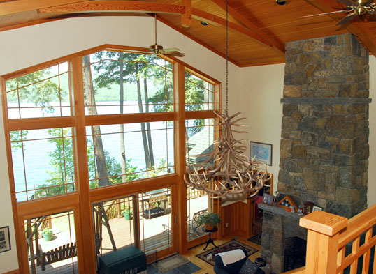 Approx 2800 sq ft. Large open Great Room with Lake views from every room of the house. Douglas Fir interior. Large Fireplace.