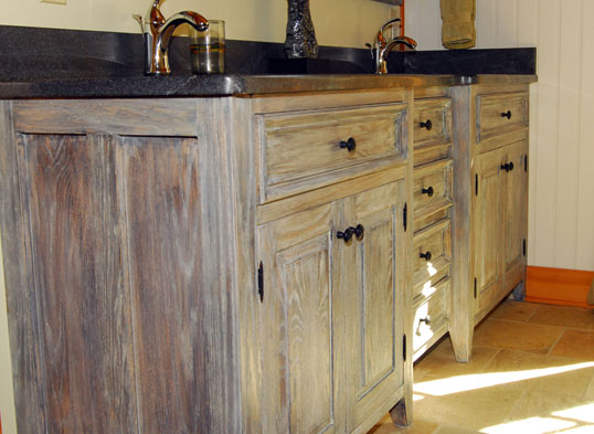 Custom Bathroom Vanity. Finished in custom "weathered oak."
