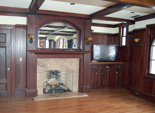 Historic Classic Tudor Remodel, Lake George New Construction Cabinetry and Fireplace Mantel Detail